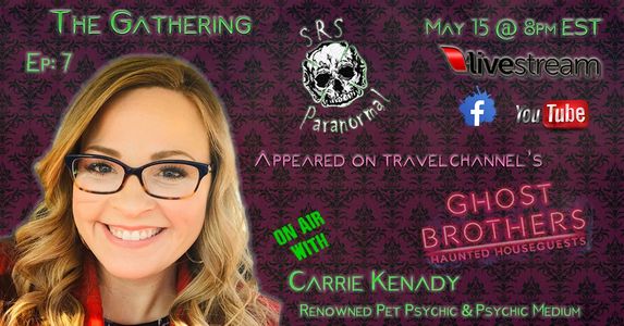 Carrie Kenady Renowned Psychic/Medium as seen on Ghost Brothers Haunted House Guests. After being attacked by an abused and neglected dog when she was six years old, pet psychic and animal communicator Carrie has been compassionate about animal welfare, animal rights, and humane education. Her abilities enable her to communicate with an animal just by looking at his or her photo. On the air with us on the Gathering .