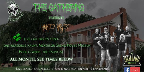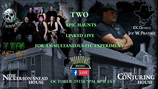 Two Epic Haunts linked by one ITC Experiment The Nickerson Snead and The infamous Conjuring House! This is an event you don't want to miss. The host of the Gathering will bring our Haunted Harvest to an incredible conclusion. We will attempt to make history by bringing you a live ITC experiment like never before. We will be live from our home Haunt The Nickerson Snead House and we will be joined by the Jay W. Prather Inventor and Paranormal Research of IDC Devices. You have seen his devices on the hit show Ghost Adventures and Haunted Towns on the travel channel. He will be joining us live from The Conjuring House. We attempt to link the spirits of our home haunt and the Conjuring house piercing the veil live on Paranormal Warehouse.