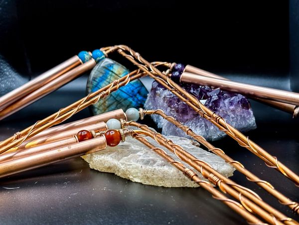 The gemstones and metals that we select for the custom dowsing rods are selected intuitively, along with considering their metaphysical properties. They are selected to promote positive communication with spirit and enhance the natural intuitive gift of the user.