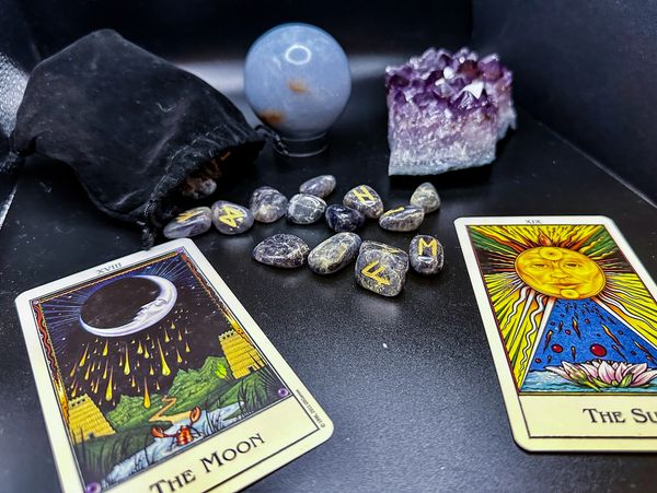 Runes are a divination practice derived from ancient Germanic peoples in Norway and Scandinavia. The runes are similar to tarot in that they assist in decision making, guidance, connecting with other realms, casting spells, and gaining personal insight. They come in a variety of gemstones and organic material.